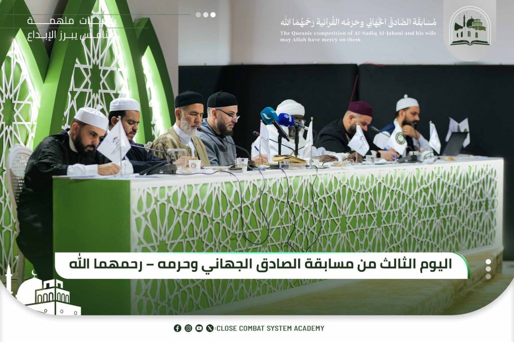 لليوم الثالث على التوالي، تتواصل بمقر أكاديمية Close Combat System SAMI Tripoli فعاليات مسابقة الصادق الجهاني وحرمه – رحمهما الله – لحفظ وتلاوة القرآن الكريم، وسط أجواء يسودها التركيز والانضباط وروح التنافس الشريف.